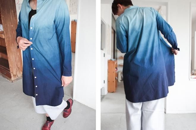 野川染織工業 藍染めグラデーションシャツワンピース LOCAL CRAFT DYEING