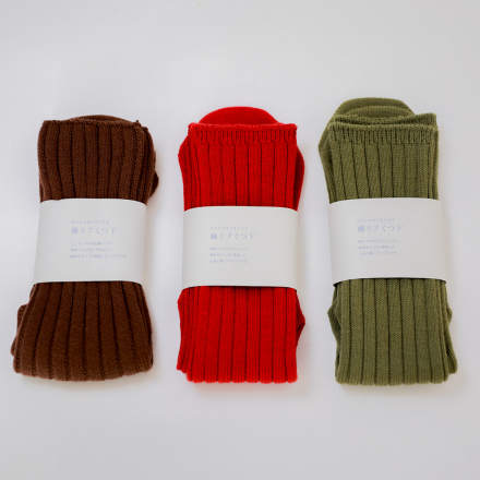 締めつけがなくズレにくい綿糸をたっぷり使用した人気の綿リブくつ下です。