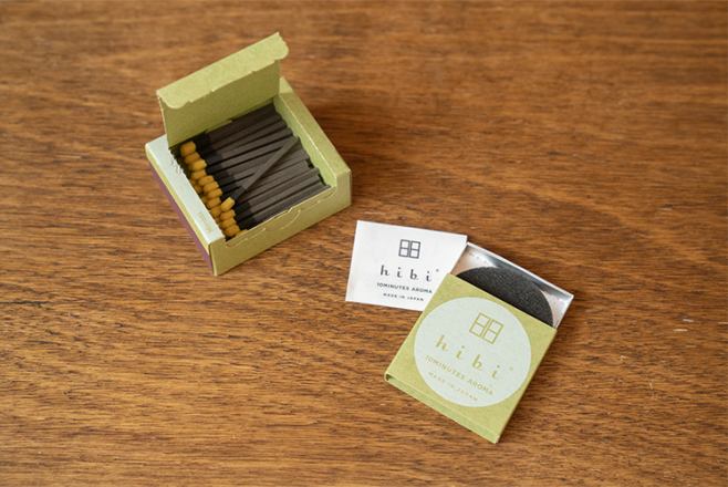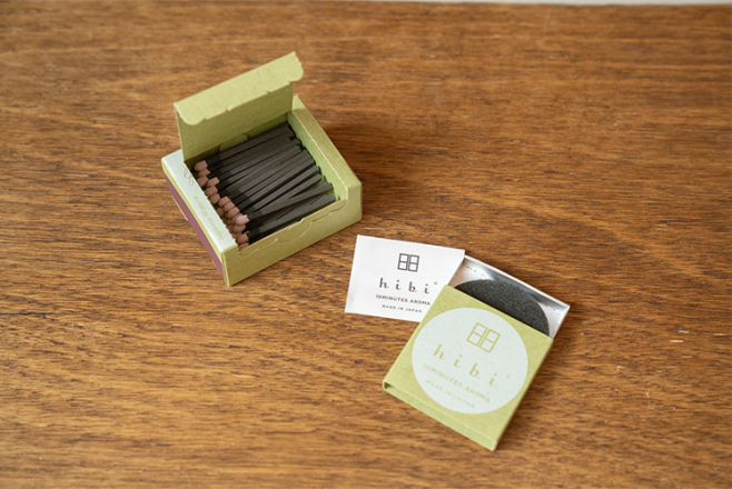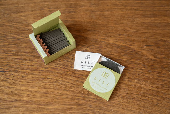 日常に10分、自然のアロマを。マッチを擦るように火をつけて、立ちのぼる自然の香りに身をゆだねて。hibiは、着火具がなくても手軽に使えるお香スティック。